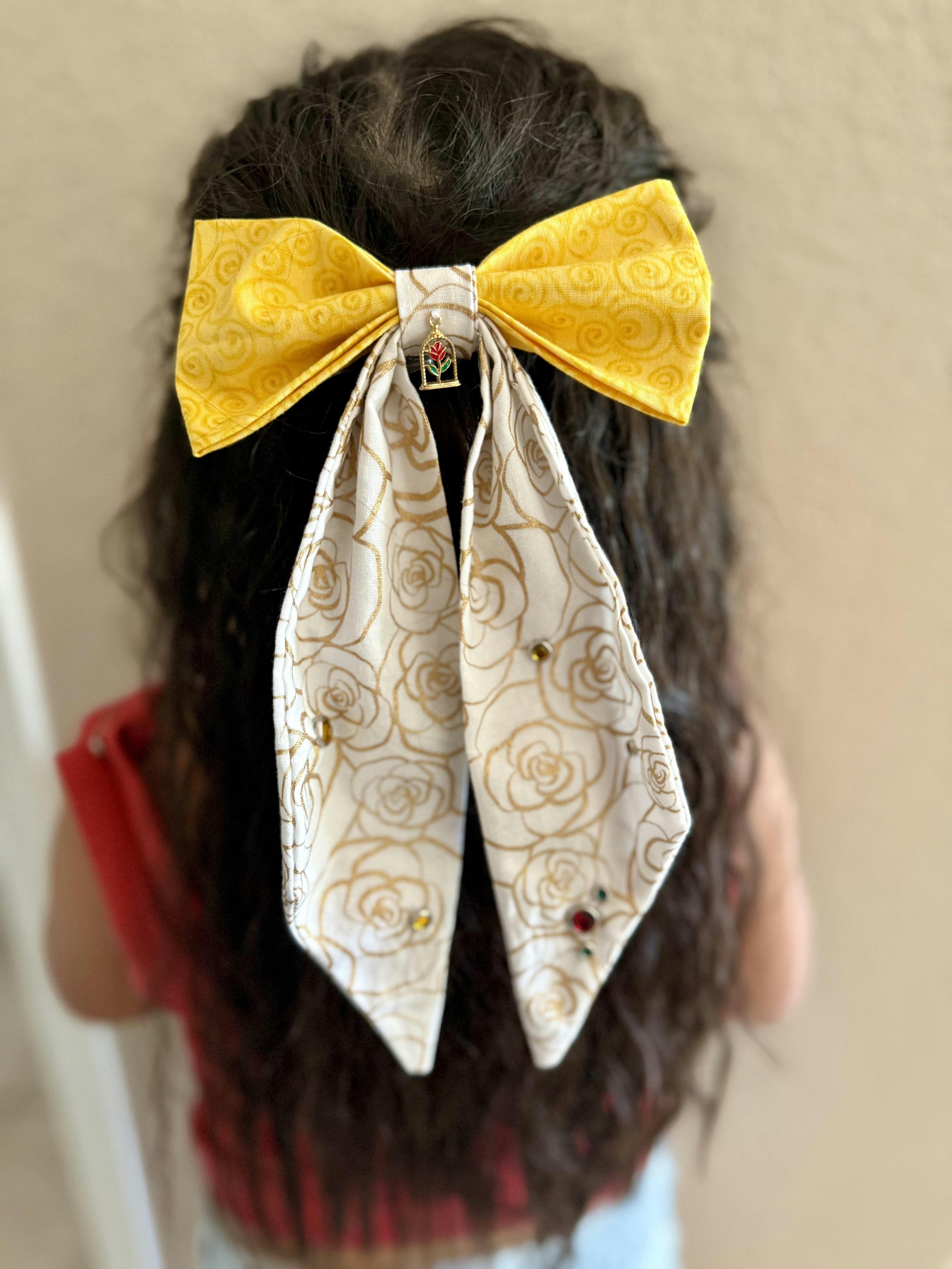 I bought this bow for my niece, and we’re absolutely in love with it! Even though she’s moved on from her Disney Princess phase, she instantly recognized which princess inspired the design—such a magical touch. The craftsmanship is stunning—from the luxe fabric to the sparkling rhinestones and delicate beadwork, every detail is beautifully done. Honestly, if I could pull it off like she does, I’d be wearing one too!